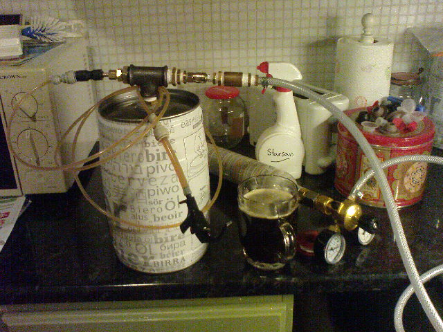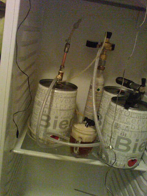 Men nu fick jag fart (har slut på flasköl) att bygga ihop nåt som går att använda. Jag ska bygga en liten ölkyl för 4 st 5L fat när jag kommer hem. Ska nog använda en husvagn/båtkyl om det kan funka....